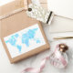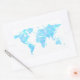 This modern abstract of the world map has a beautiful flow of different shades of blue watercolors with a speckled texture.