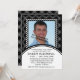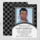 Perfect for the modern man or woman, this stylish black and white birthday party invitation is great for males or females of any age. The eyecatching design features a large area for your birthday person's photograph, Bold B&W criss cross lines circle chequerboard patterned double frame, and rounded top text area with multiple customizeable text fields for the party details and address information. Sample photo is creative commons commercial use OK by user varsitylife.
