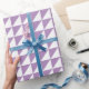 Modern triangles pattern wrapping paper in African Violet Purple, or to choose another colour from the thousands available, click on the "Customise It" tab. High quality matte, glossy, linen or extra strong Tyvek gift wrap paper. Made and printed in the USA. Trendy triangles geometric design paper, ideal for birthday, anniversary and wedding gifts or Christmas presents.