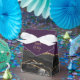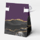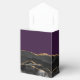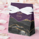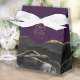 This elegant modern favour box features a black watercolor agate design trimmed with gold faux glitter. Personalise it with the names of the couple in gold-coloured handwriting script over a large ampersand, along with the wedding date below, on a purple background.