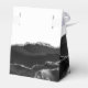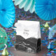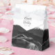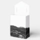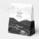 This elegant modern favour box features a black watercolor agate design trimmed with silver faux glitter. Personalise it with the names of the bride and groom in charcoal grey handwriting script over a large grey ampersand on a white background, along with the wedding date below.