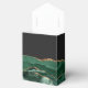This elegant modern favour box features an emerald green watercolor agate design trimmed with gold faux glitter. Personalise it with the names of the bride and groom in gold-coloured handwriting script over a large grey ampersand on a slate black background, along with the wedding date below.