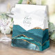 This elegant modern favour box features a teal blue watercolor agate design trimmed with gold faux glitter. Personalise it with the names of the couple in charcoal grey handwriting script over a large pale turquoise ampersand on a white background, along with the wedding date below.