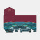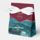This elegant modern favour box features a teal blue watercolor agate design trimmed with gold faux glitter. Personalise it with the names of the bride and groom in gold-coloured handwriting script over a large ampersand on a burgundy red background, with the wedding date below.