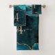 Modern Elegant Agate Geode Gemstone Marble Teal Green Gold Monogram Script Name Bath Towel Set