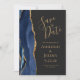 Modern Agate Navy Blue Gold Dark Save the Date Invitation