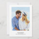 This elegant modern save the date card features a navy blue watercolor agate border trimmed with faux gold glitter. The customisable text is charcoal grey on a white background. Easily replace the sample image on the back of the card with your vertical photo, and add a brief text with additional information (such as your website URL).