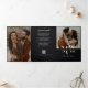 Welcome a touch of sophistication to your momentous day with this elegant modern all-in-one wedding invitation. This beautifully designed trifold invitation is a contemporary twist on traditional wedding stationery, offering a full suite of information across six elegantly laid out panels. The cover features a photo, complemented by the sleek typography of their monogrammed initials and names with the wedding date, establishing a chic and personal touch. An additional photo on the inner flap sets a warm, inviting tone, while the remaining panels provide details of the ceremony, reception, venue, dress code, accommodation arrangements, online RSVP (including a QR code), wedding website (including a QR code), gift registry or honeymoon fund (including a QR code), or any text of your choice. This invitation is a seamless blend of beauty and functionality. Crafted with the modern couple in mind, every detail from the stylish font to the QR code integration, ensures a seamless experience for your guests. The crisp black and white design provides a timeless backdrop that makes your photos pop, promising to be a keepsake your guests will treasure. This all-in-one trifold invitation, customisable with your own details and photos, provides not only the key information but also a glimpse into the style and elegance of your upcoming nuptials. No need for separate RSVP or details cards. Invite your loved ones to celebrate in style and anticipate the joy and elegance that await them at your wedding with this exceptional invitation designed to charm and inform.
