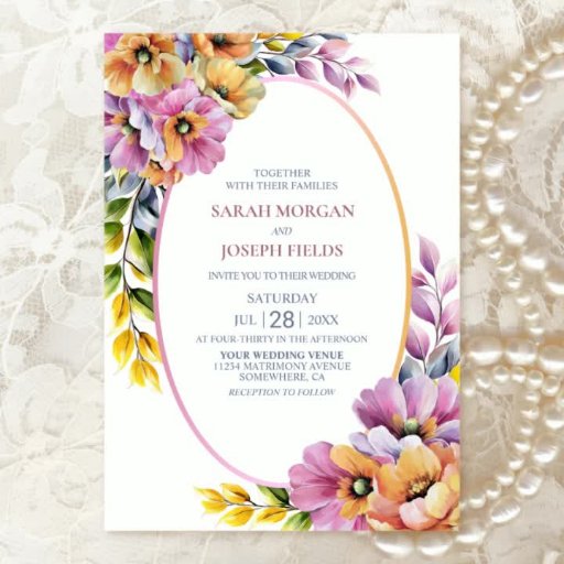 Invite your friends and loved ones to celebrate your union with this modern all in one wedding invitation, featuring pink and orange florals inspired by enduring love. The customisable text allows you to effortlessly add the bride and groom’s names, wedding date, and the necessary details of your celebration. Designed for the budget-savvy couple, the reception venue location, RSVP response request, accommodation details, and any other information your guests may require can be included on the reverse side of this invitation, saving money on extra stationery. A variety of paper types and corner styles are available for your unique invitations, along with the option to download if you prefer a digital format.