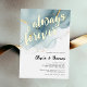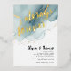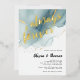 A beach-themed wedding invitation template that features a painted, abstract watercolor scene of a beach and waves with a gold ink pour effect (the gold is a digital effect, not real foil!) and modern calligraphy with the title "always and forever" in real gold foil. Classy and elegant, simple and modern, it is a lovely choice for a beach wedding during any season, for a modern couple.