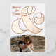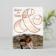 Modern and Elegant script calligraphy ampersand with rounded mask overlay of simple 2 photos in real rose gold foil, black and white wedding save the date.