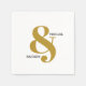 Large rustic gold ampersand with bride and groom names in black block text on a white background.