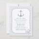 Plan a nautical themed baby shower for mummy to be who is expecting a baby boy! This modern, contemporary, elegant and stylish nautical baby shower invitation is perfect with its blue colour palette, boat anchor and rope border. Background of diagonal lines. Personalise easily with party details.