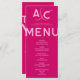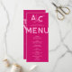 This Modern and Bold Magenta Wedding Menu Card is a perfect blend of modern and elegance for your special day. This card features a vibrant magenta hue that captures the eye and heart, setting a memorable tone for your wedding feast. Designed with both beauty and functionality in mind, the front of the card elegantly outlines your carefully selected menu, from appetizers to desserts, in a clear, inviting format. Each dish is presented in a modern font that complements the card's striking colour, ensuring your guests are excited about the culinary delights awaiting them.