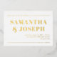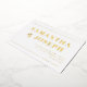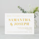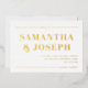These simple yet statement-making wedding invitations feature modern, bold gold foil text on a minimalist white background, with gold foil lines accenting the layout.