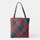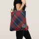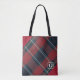 Modern and Classic Red and Blue Plaid Monogram Tote Bag
