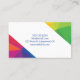 A stylish, vibrant business card featuring a colourful geometric pattern for modern professionals. It includes contact details, emphasizing bold and creative details suitable for photographers, designers, and creative industries.