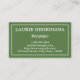 This customisable, modern, and plain business card design features a green background, and a double-line white border. It could be used by a professional such as a paralegal, public notary, notary or counsellor at law. The name, profession and contact details can be personalised.