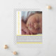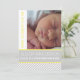 Elegant and stylish yellow, grey striped neutral simple baby birth announcement featuring striped pattern with grey and white stripes, your baby’s birth details on a grey band with yellow outline and the baby’s photo. This modern customisable template design is great for announcing your baby’s girl or baby boy birth.