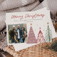 Celebrate the season with modern and merry Christmas photo cards that friends and family will be sure to love! The cards feature festive pine tree artwork, stars, and a message that can be customised to your liking.