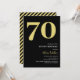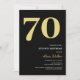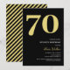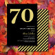 Elegant gold and black 70th birthday party invitations featuring the number '70' in a large bold serif font, and a modern invite template that is easy to personalise.
