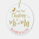 Make your Christmas tree give off Christmas cheer and spirit on all four sides by hanging a ceramic ornament with this Christmas design so traditional but current thanks to the typography and its minimalist style so current.