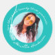 Celebrate your graduation with style and elegance with this modern retro teal graduation sticker! Featuring a photo space to add a special touch to the design, this stylish sticker is perfect for any celebration. Add these to your favours, gifts and more! Get ready to commemorate your special day with this one-of-a-kind design!