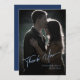 This casual modern and simple script navy blue photo wedding thank you template with the backside includes a generic thank you message that you can personalised.