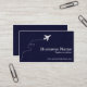 These travel business cards are perfect for travel agents, travel agencies, pilots, world travelers, travel bloggers, and more. The card features a dark blue textured background print, with an aeroplane with air trail on the front. There is room for your business name (or your name), a tagline and a website. The back has room for your name and contact details.