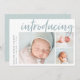 An elegant and modern birth announcement card featuring three photos (one square and two horizontal), with "introducing" in across the top in hand lettered brush script typography. Personalise with your baby's name and birth stats along the left side. Add a personal message to the back, along with an additional photo.