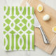 Modern Apple Green and White Trellis Pattern Tea Towel