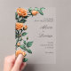 Make a lasting impression with this stunning, clear acrylic wedding invitation. Featuring a vibrant climbing arrangement of apricot orange roses and rich green foliage, this design perfectly balances botanical beauty with a sleek, modern aesthetic.