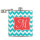 Modern Aqua Coral Chevron Monogram Whiskey Flask