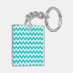 Modern Aqua Coral Chevron Zig Zag Stripe Key Chain