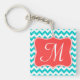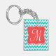 Modern Aqua Coral Chevron Zig Zag Stripe Monogram Initial Personalised Key Chain