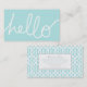 Modern trendy typography Hello business card in aqua background colour, which can be customised to match your business. Elegant Lattice pattern on the backside.