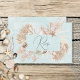 This wedding response card design features a beautiful pale aqua turquoise background with an underwater texture feel, surrounded by dusty blue, tan, brown, peach, and white shells, coral, and sea life. Perfect for the destination or beach wedding. Created by Simply Farmhouse Press, this design is part of the Modern Aqua Ocean & Shells wedding suite.