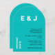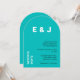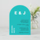 The front of this trendy modern wedding invitation card features black and white lettering on a bright aqua turquoise background. The back of the card features plain bright aqua turquoise. A lovely wedding invitation card that is easy to personalise online before ordering.