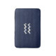 A silver chrome like Aquarius Zodiac symbol on a blue carbon fiber texture print. A modern urban racy design for a great custom birthday gift idea.