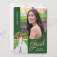 Invite friends and family to your "Grad Party" with the modern, 2 photo, green and gold invitation. The design features photos with an arched edge. Custom text, on the reverse side, allows you to personalise with your party details.