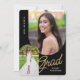 Invite friends and family to your "Grad Party" with the modern, 2 photo, black and gold invitation. The design features photos with an arched edge. Custom text, on the reverse side, allows you to personalise with your party details.