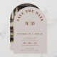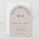 Arch beige monograms wedding save the date card featuring an arch heading, monograms and the couples photo and QR code on the back. Great for someone looking for an arched shaped save the date.
