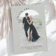 Beautiful simplicity and artistic on trend style make this modern arch wedding thank you card design pop with appeal. it features a photo template on the front of the card to upload your desired photo. There is a text template on the front of the card to personalise with the bride and groom's names and wedding date. The back of this card has a sample thank you message that you can use as written or personalise with your wording and the bride and groom's names. Show here in a pastel sage green background, this card is available in other colours as well.
