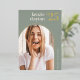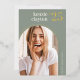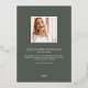 Modern photo graduation announcement features a vertical or portrait orientated photo in a unique arched layout, on a sage green background accented with gold foil trim. The graduate's name and graduation year appear at the top, with the school name at the lower right. Add a personal message to the back, along with an additional photo.