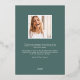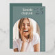 Modern photo graduation announcement features a vertical or portrait orientated photo in a unique arched layout, on a dusty sage green background accented with silver foil trim. The graduate's name and graduation year appear at the top, with the school name at the lower right. Add a personal message to the back, along with an additional photo.