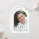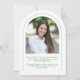 This green and white simple minimalist arch graduation announcement features a delicate arch frame, 2 photo templates and elegant modern typography.