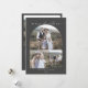This modern arch grey photo collage family Christmas holiday card is the perfect simple holiday greeting. The bohemian dark grey design features unique industrial lettering typography with minimalist vintage style. Personalise the front of the card with 3 photos, your family name and the year. Include an additional photo, and a year in review or family newsletter on the back of the card.