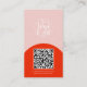 This vibrant red and blush pink makeup artist business card features a bold arched photo frame on the front and a scannable QR code on the back for easy access to booking and price info. The layout includes room for a headshot, social media links, and logo, all in a trendy modern layout designed to grab attention. The strong contrast and chic arch design make this perfect for beauty professionals who want to stand out.