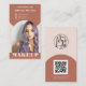 Modern arch retro boho earth tone terracotta and beige photo qr code logo makeup photo , add your business photo . Add your social media. With a bold font, all the colours are editable , add your logo.