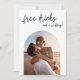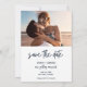 Free Drinks arch photo modern beach wedding save the dates. Customise with a photo on the front and all of your wedding details and a second photo on the back.